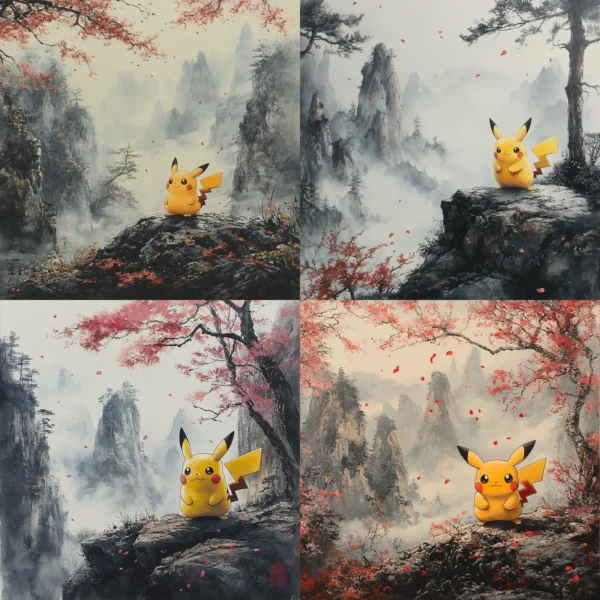 Midjourney Prompt: Bring your favorite Pokémon to life with the timeless elegance of Sumi-e